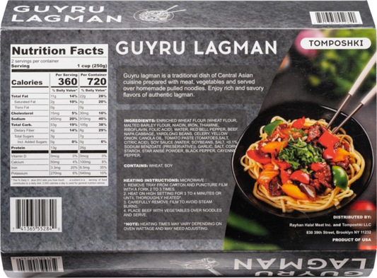 Tomposhki, Fully Cooked Halal Guyru Lagman - Central-Asian Inspired Noodles with Beef & Vegetables, 17.6oz/500g (Pack of 4)