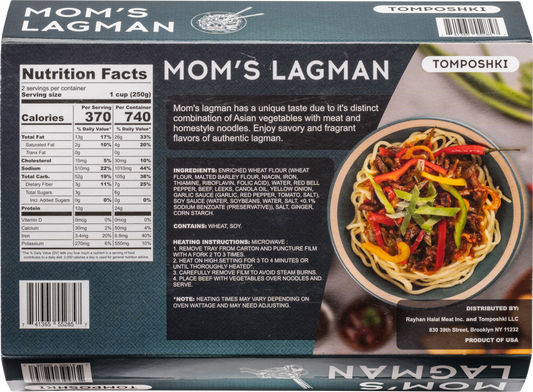 Tomposhki, Fully Cooked Halal Mom's Lagman - Unique & Authentic Flavors of Asian Vegetables with Beef & Noodles, 17.6oz/500g (Pack of 4)